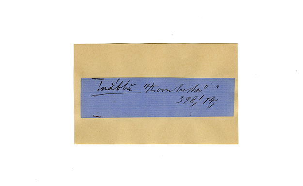 ink on blue paper glued on card