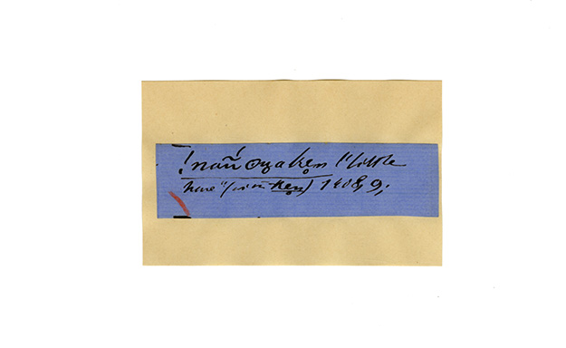 ink on blue paper glued on card
