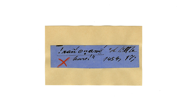 ink on blue paper glued on card