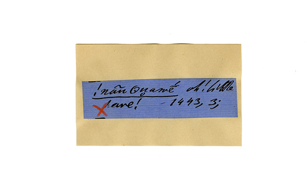 ink on blue paper glued on card