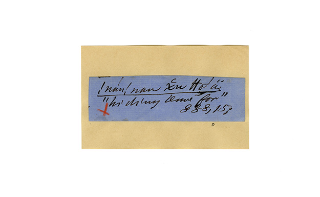 ink on blue paper glued on card