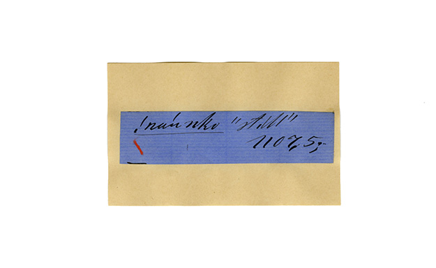 ink on blue paper glued on card