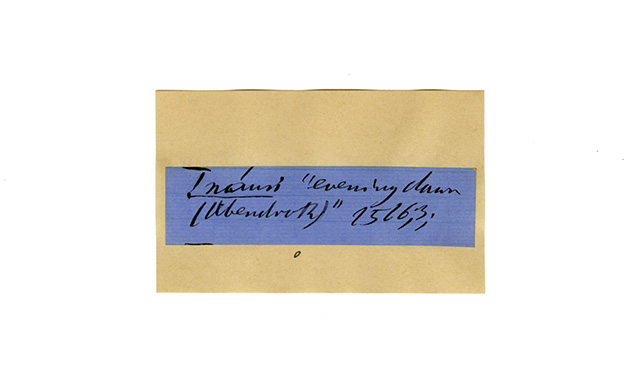 ink on blue paper glued on card