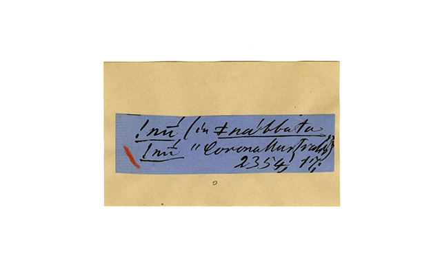 ink on blue paper glued on card
