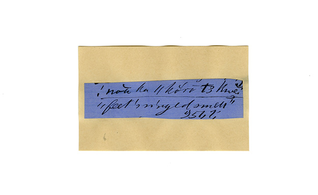 ink on blue paper glued on card