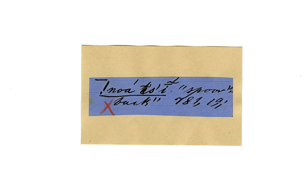 ink on blue paper glued on card