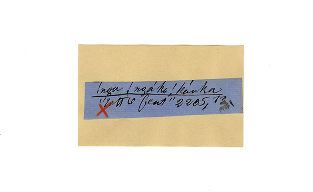 ink on blue paper glued on card