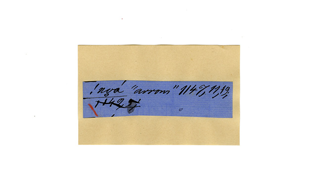 ink on blue paper glued on card