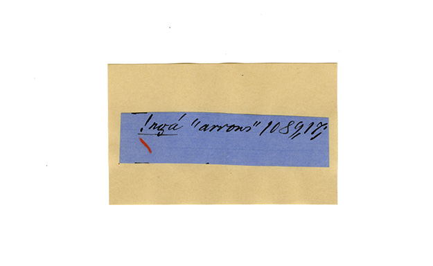 ink on blue paper glued on card