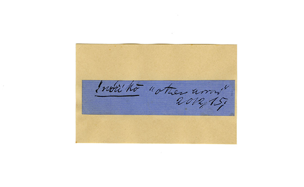ink on blue paper glued on card