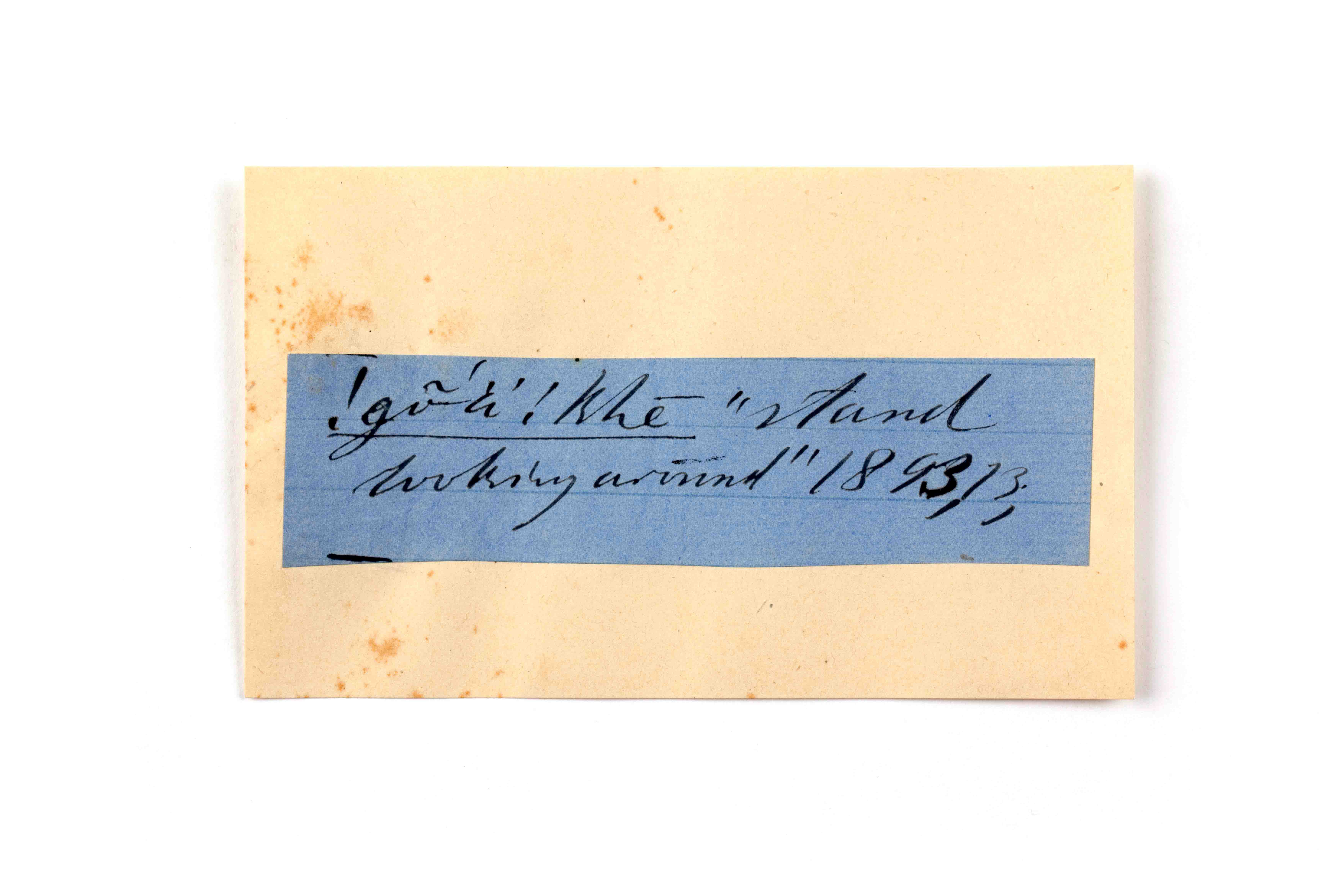 ink on blue paper glued on card