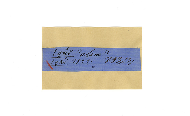 ink on blue paper glued on card