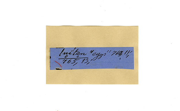 ink on blue paper glued on card