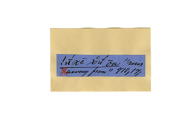 ink on blue paper glued on card