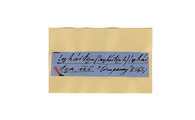 ink on blue paper glued on card