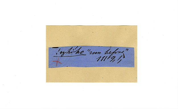 ink on blue paper glued on card
