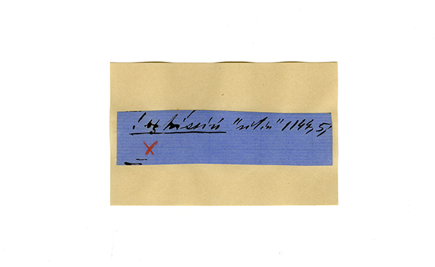 ink on blue paper glued on card