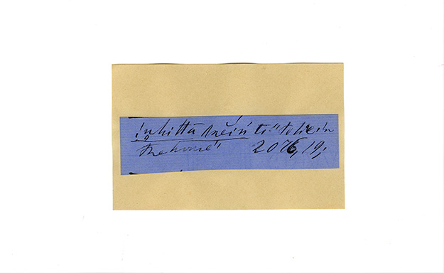 ink on blue paper glued on card