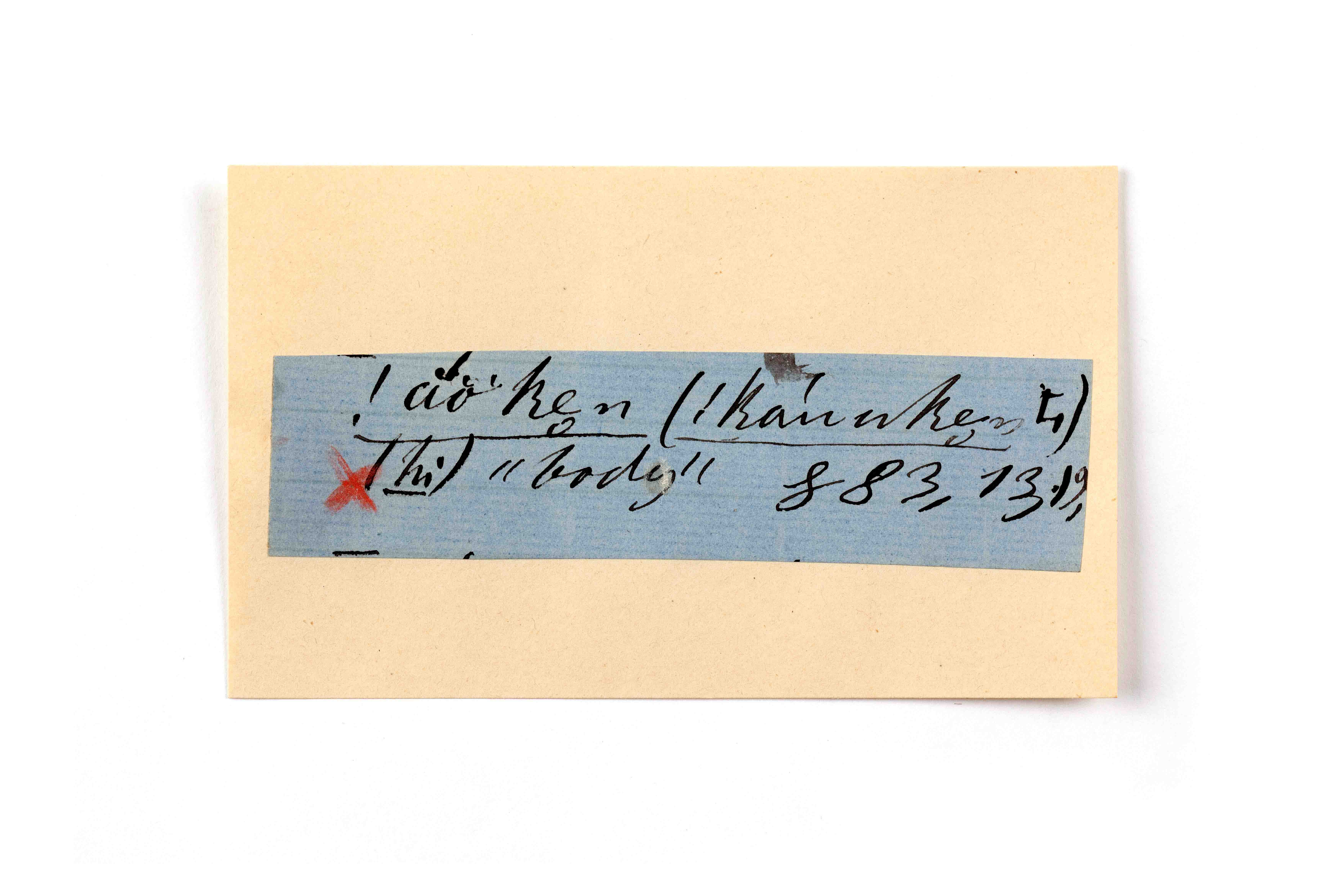 ink on blue paper glued on card