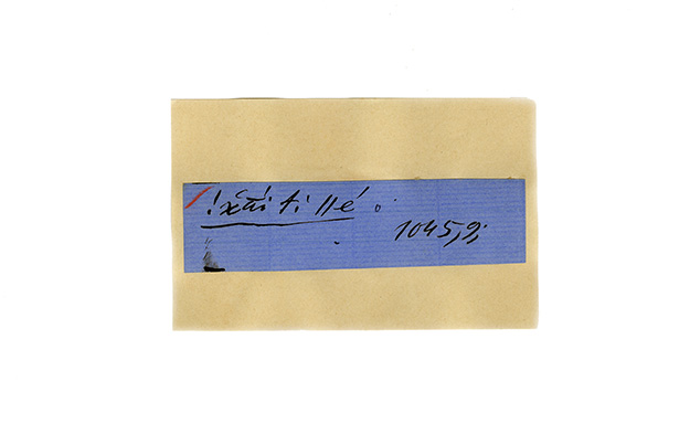 ink on blue paper glued on card