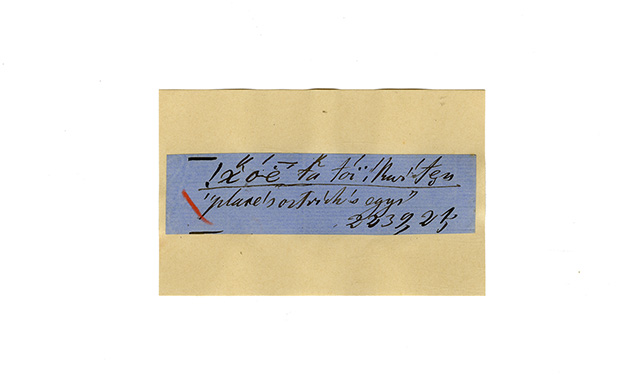 ink on blue paper glued on card
