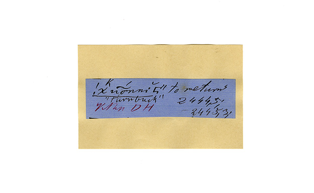 ink on blue paper glued on card
