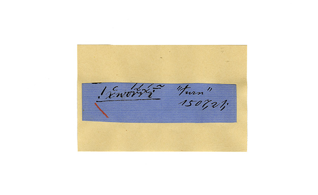 ink on blue paper glued on card