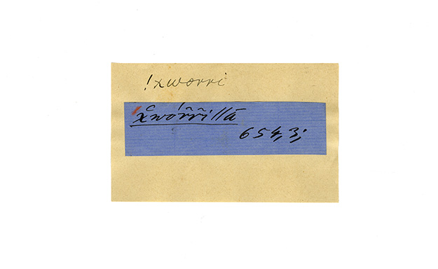 ink on blue paper glued on card