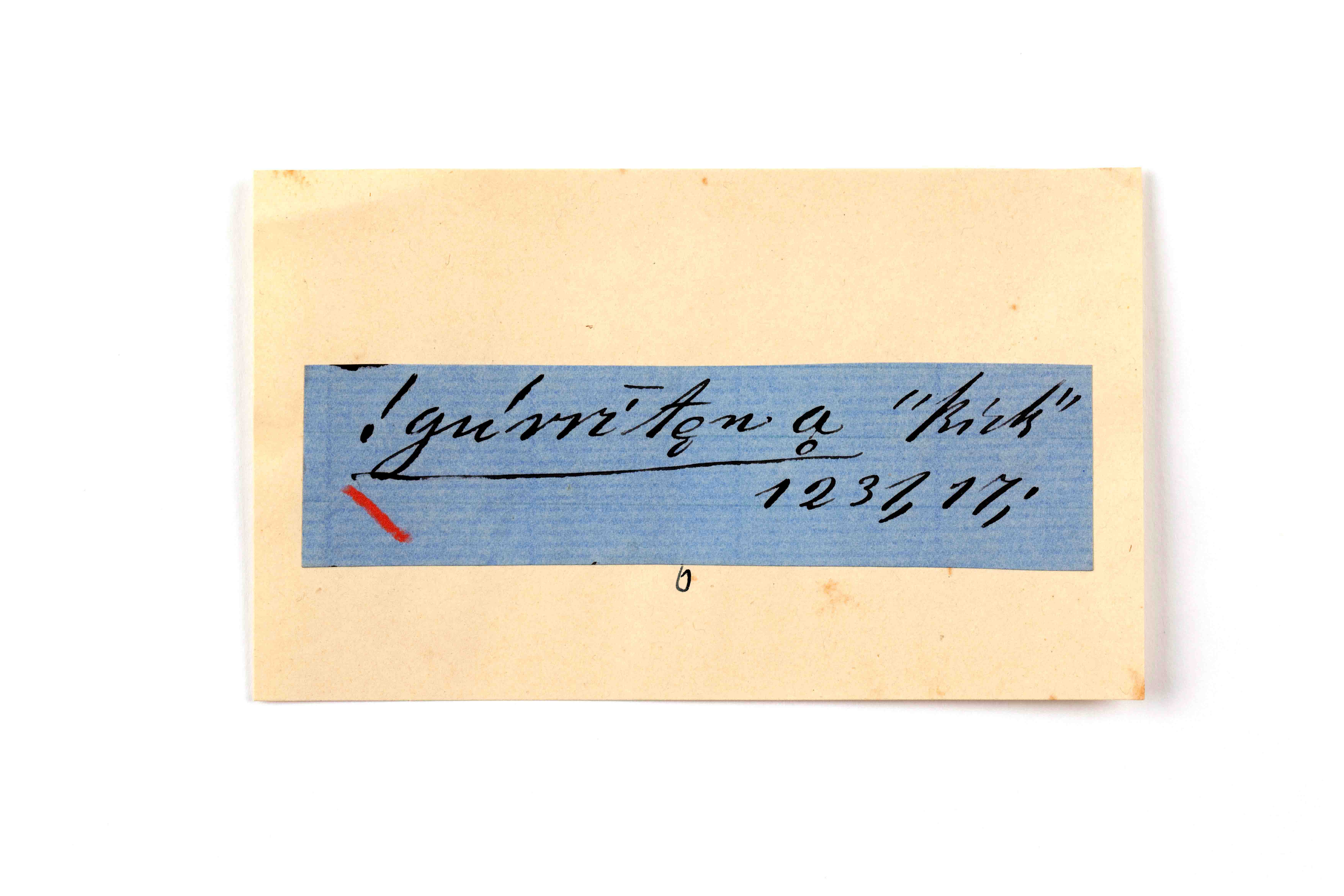 ink on blue paper glued on card