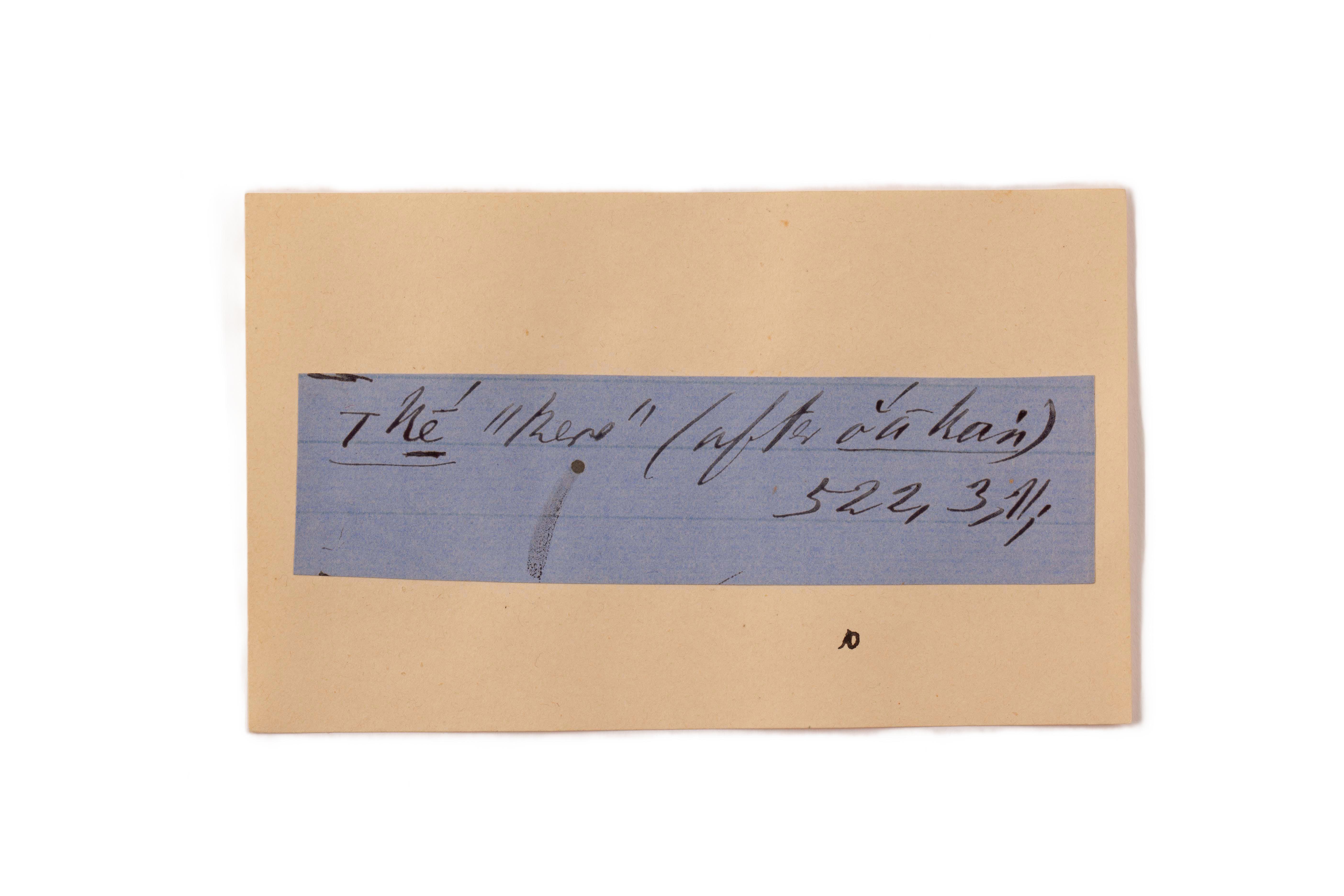 ink on blue paper glued on card