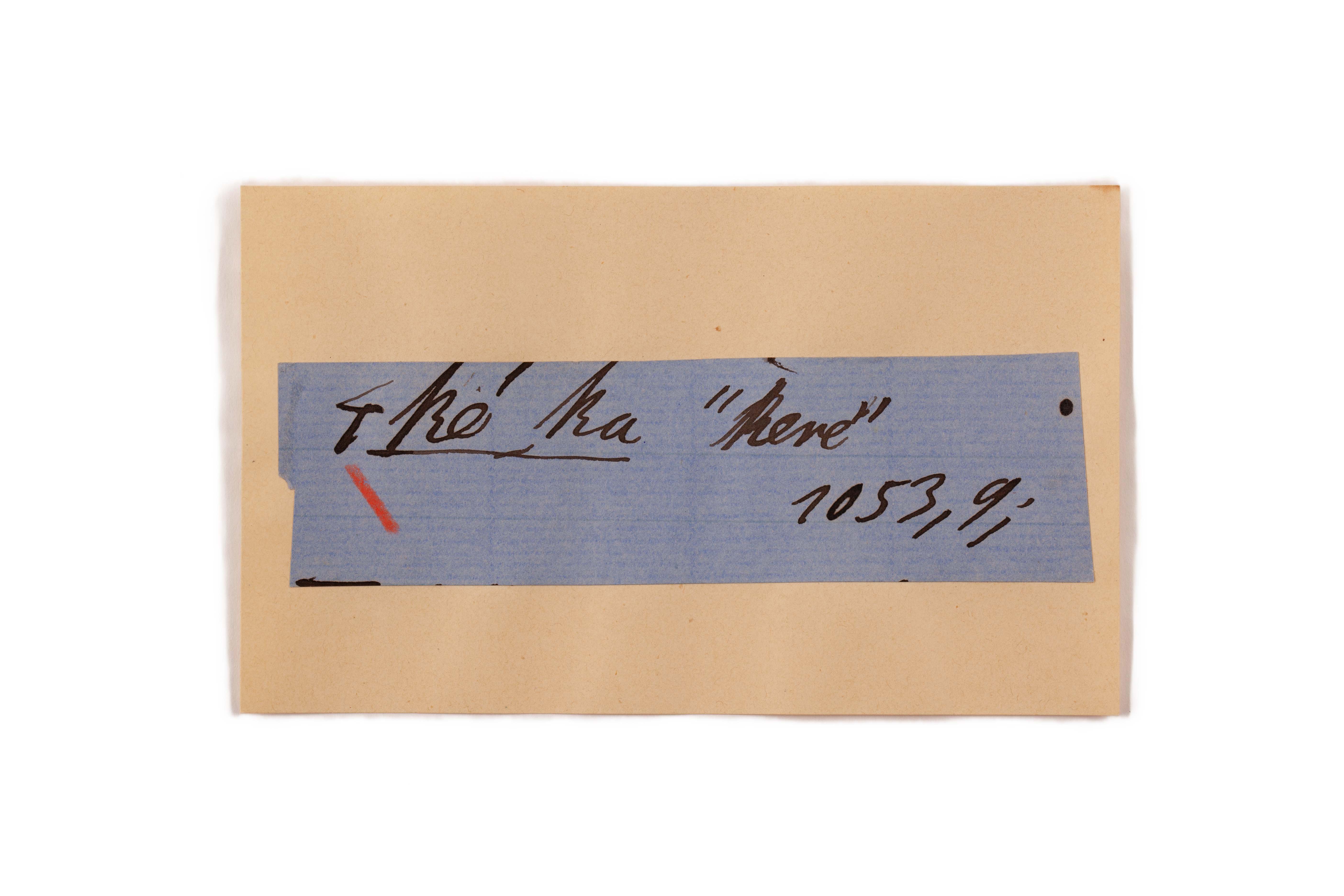 ink on blue paper glued on card