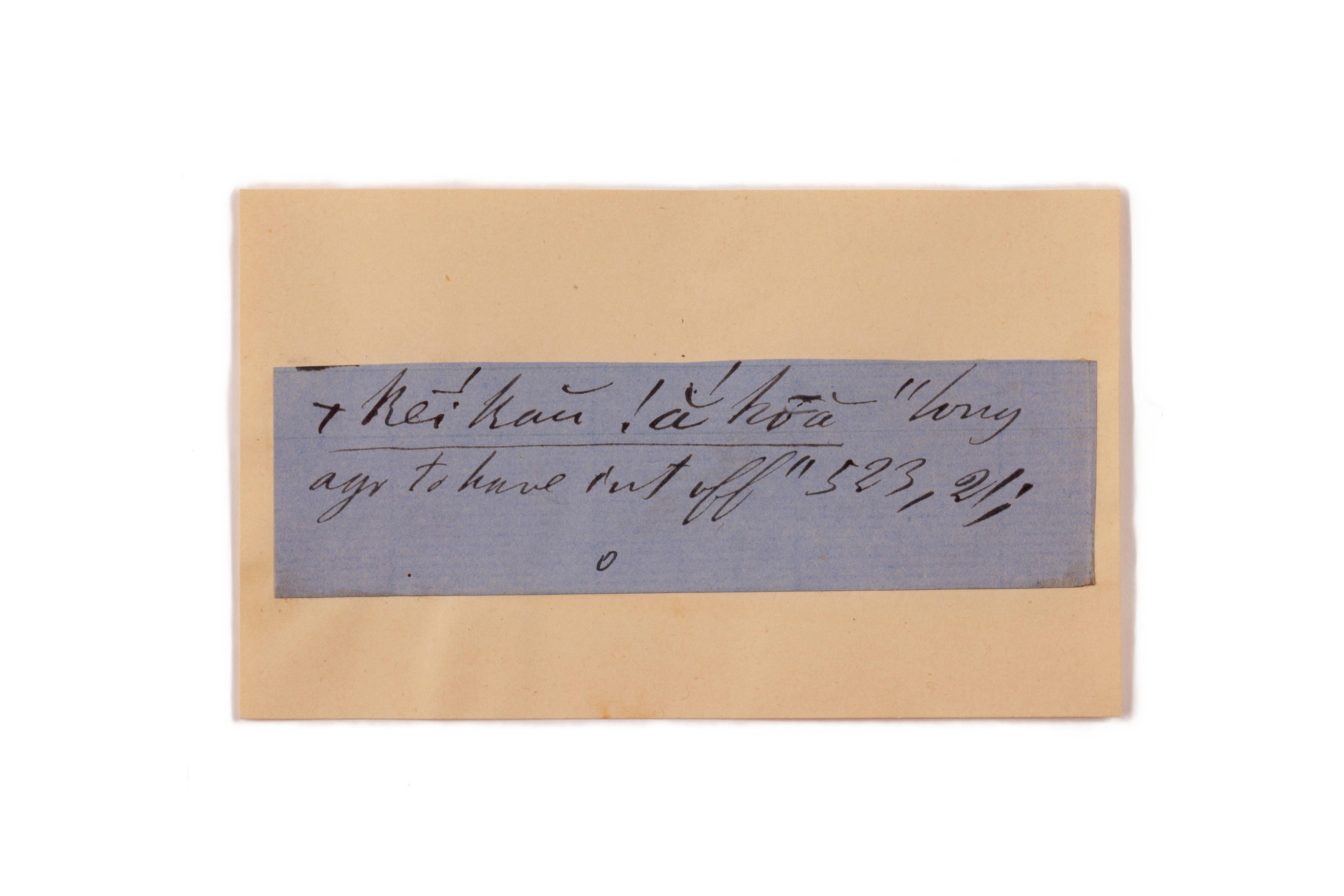 ink on blue paper glued on card