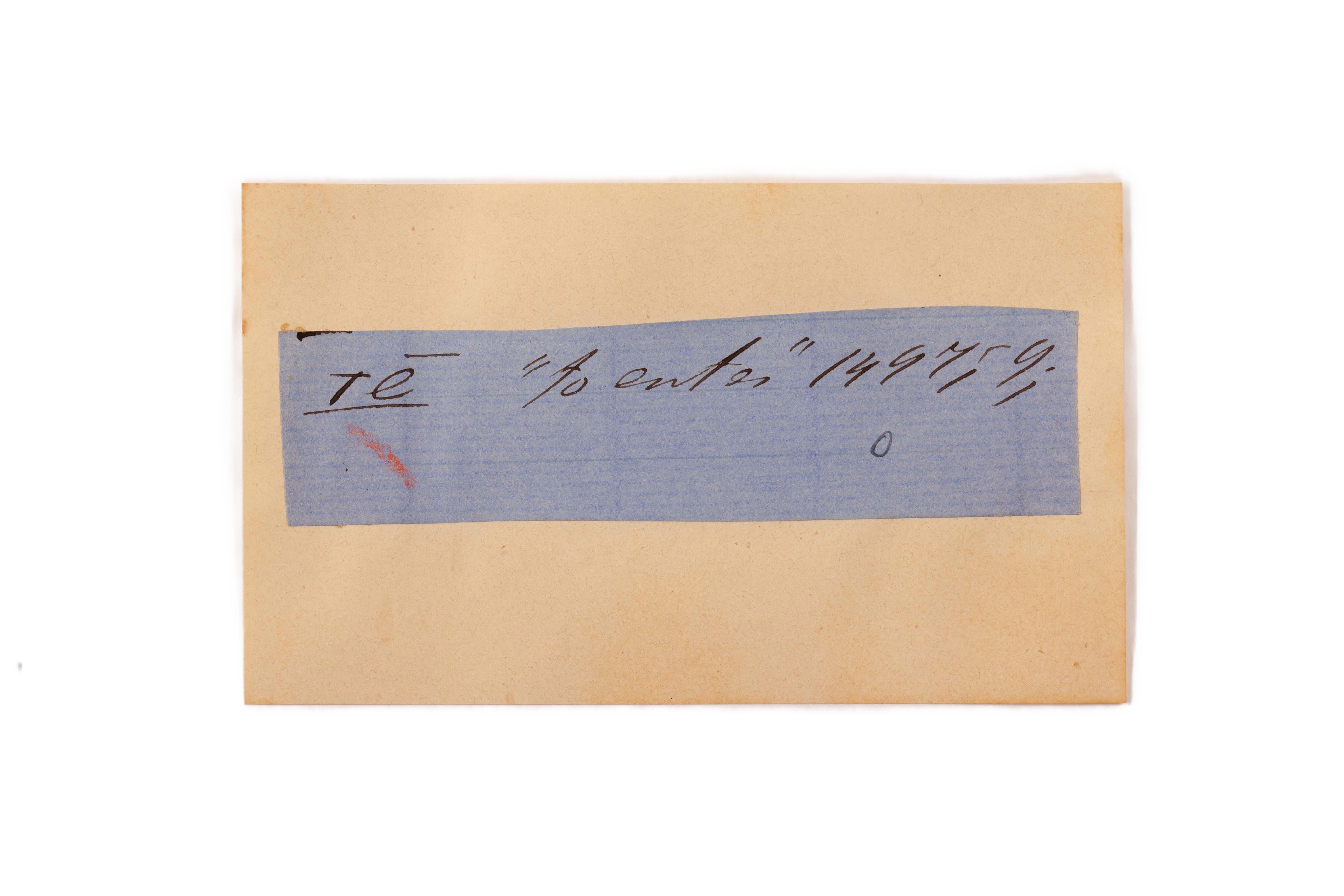 ink on blue paper glued on card