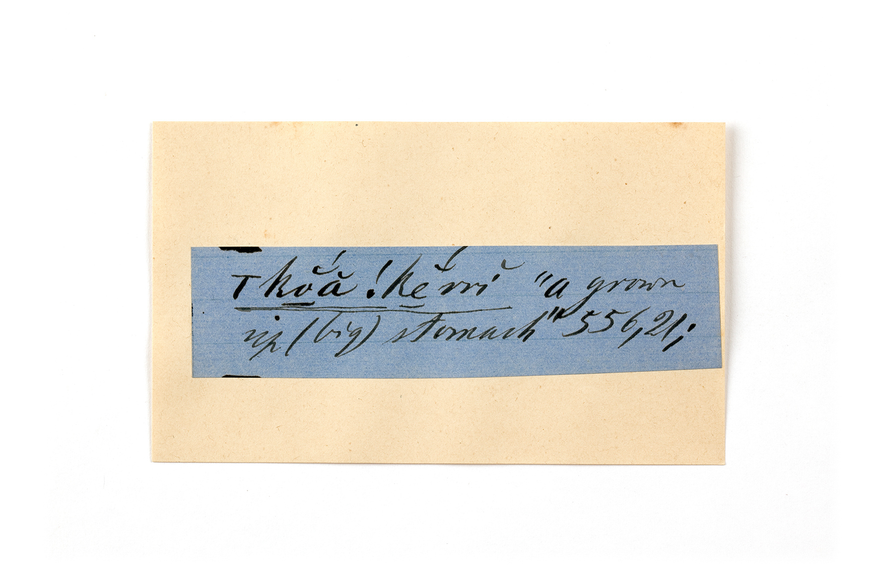 ink on blue paper glued on card