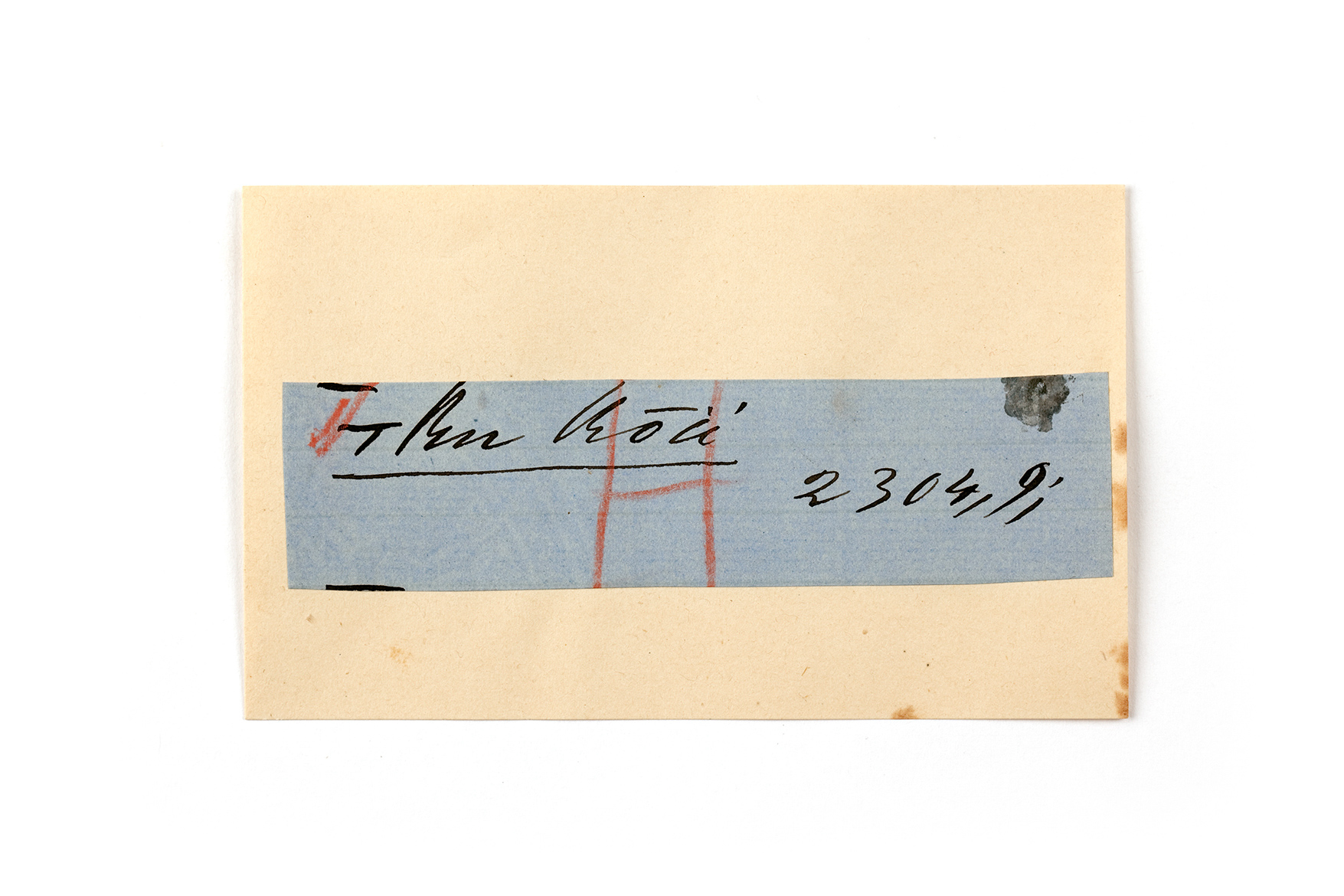 ink on blue paper glued on card