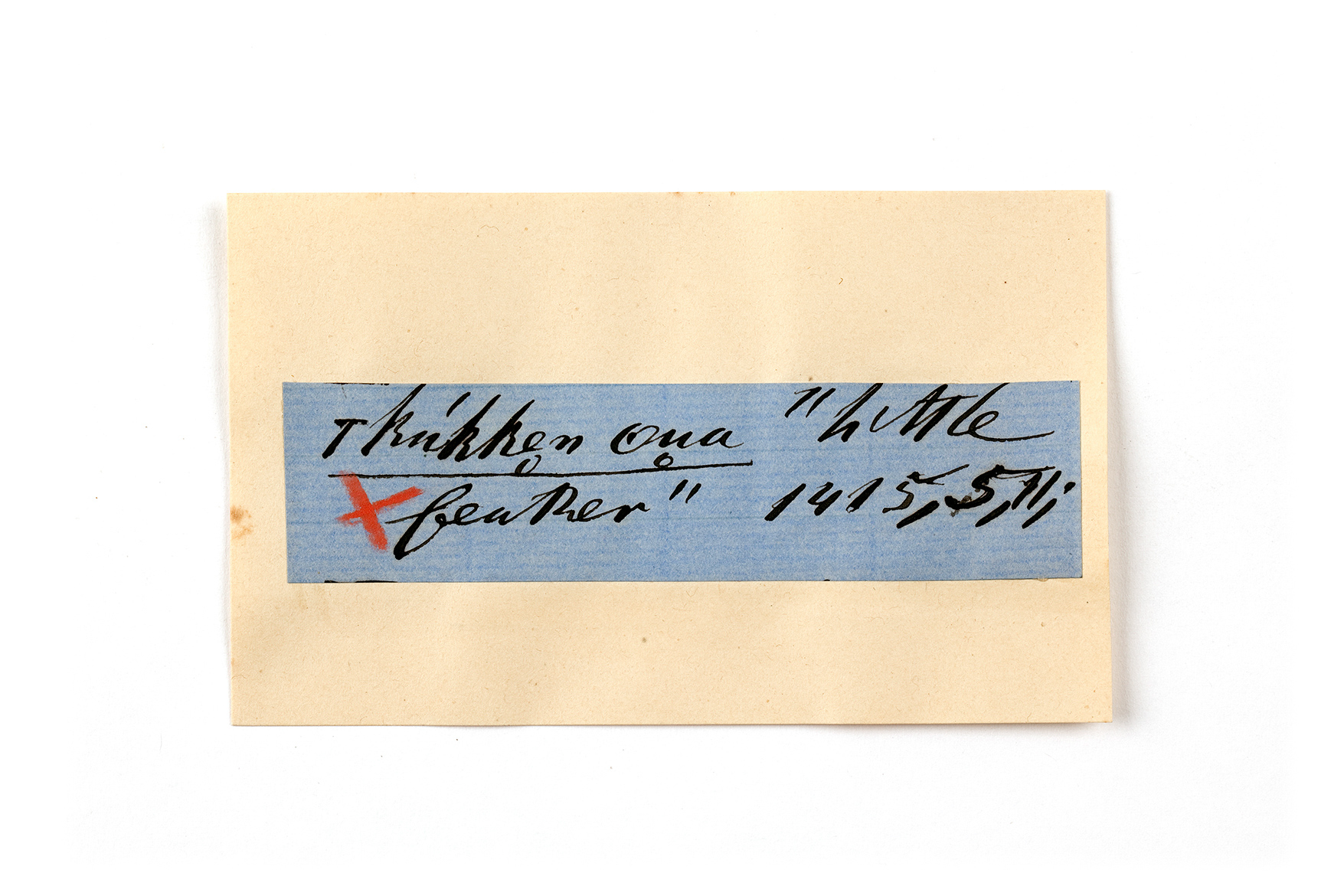 ink on blue paper glued on card