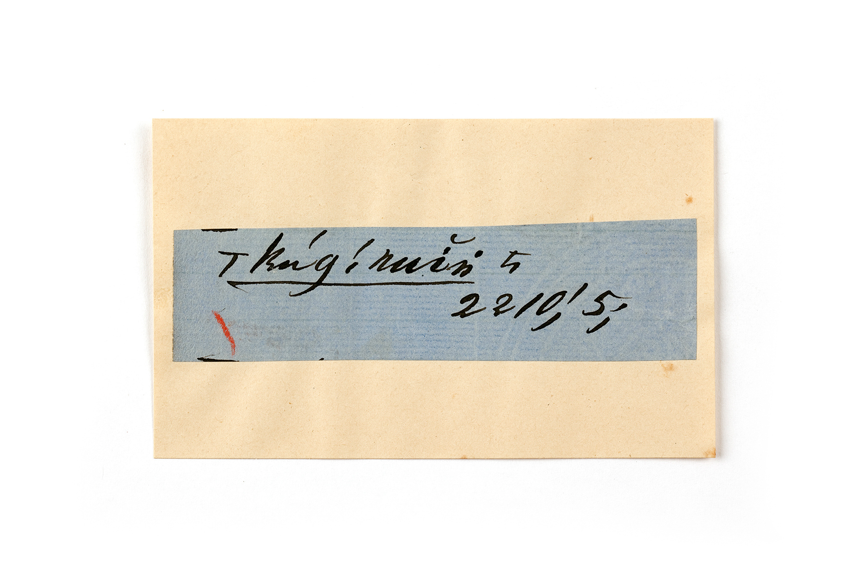 ink on blue paper glued on card