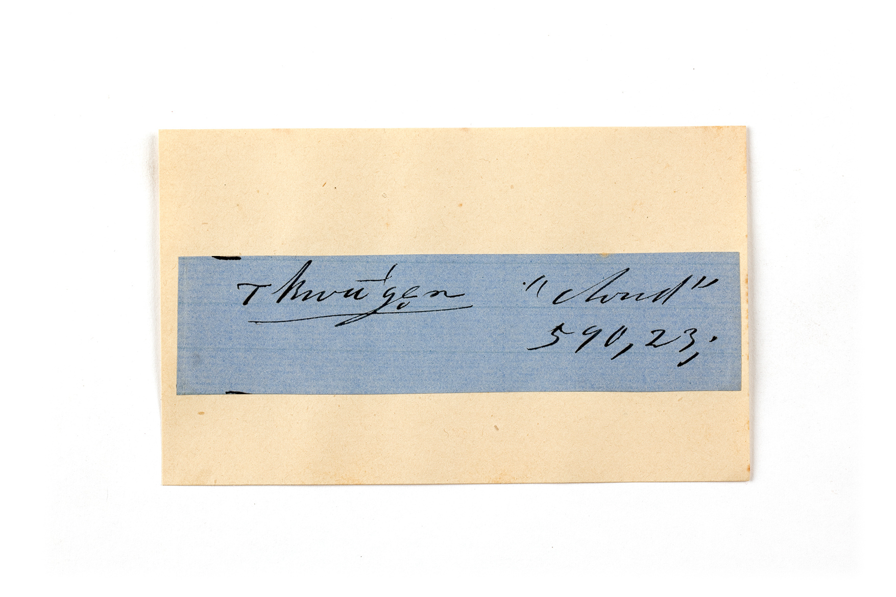 ink on blue paper glued on card