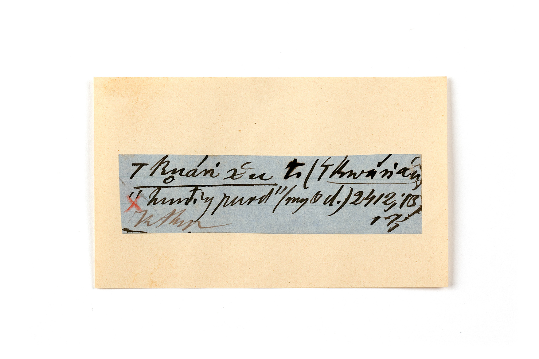 ink on blue paper glued on card