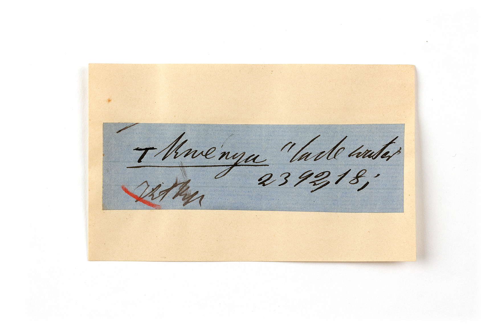ink on blue paper glued on card