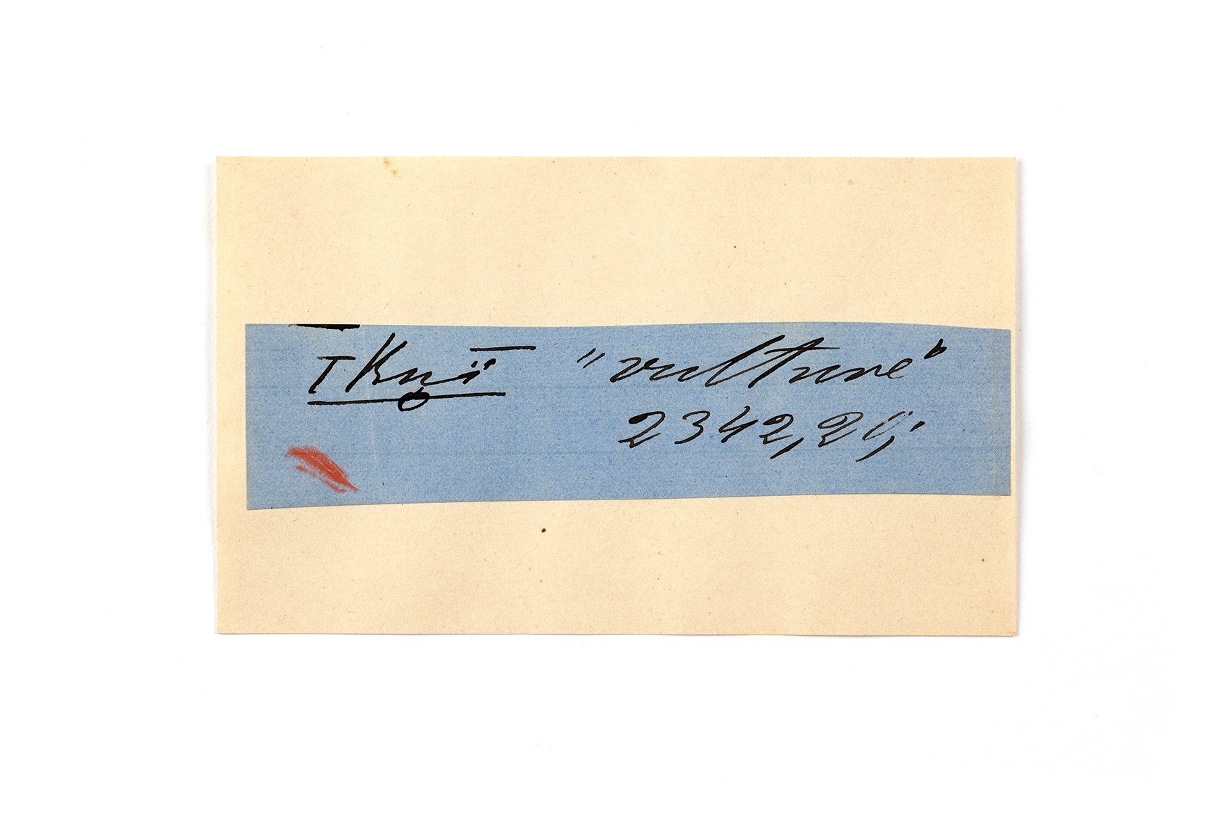 ink on blue paper glued on card