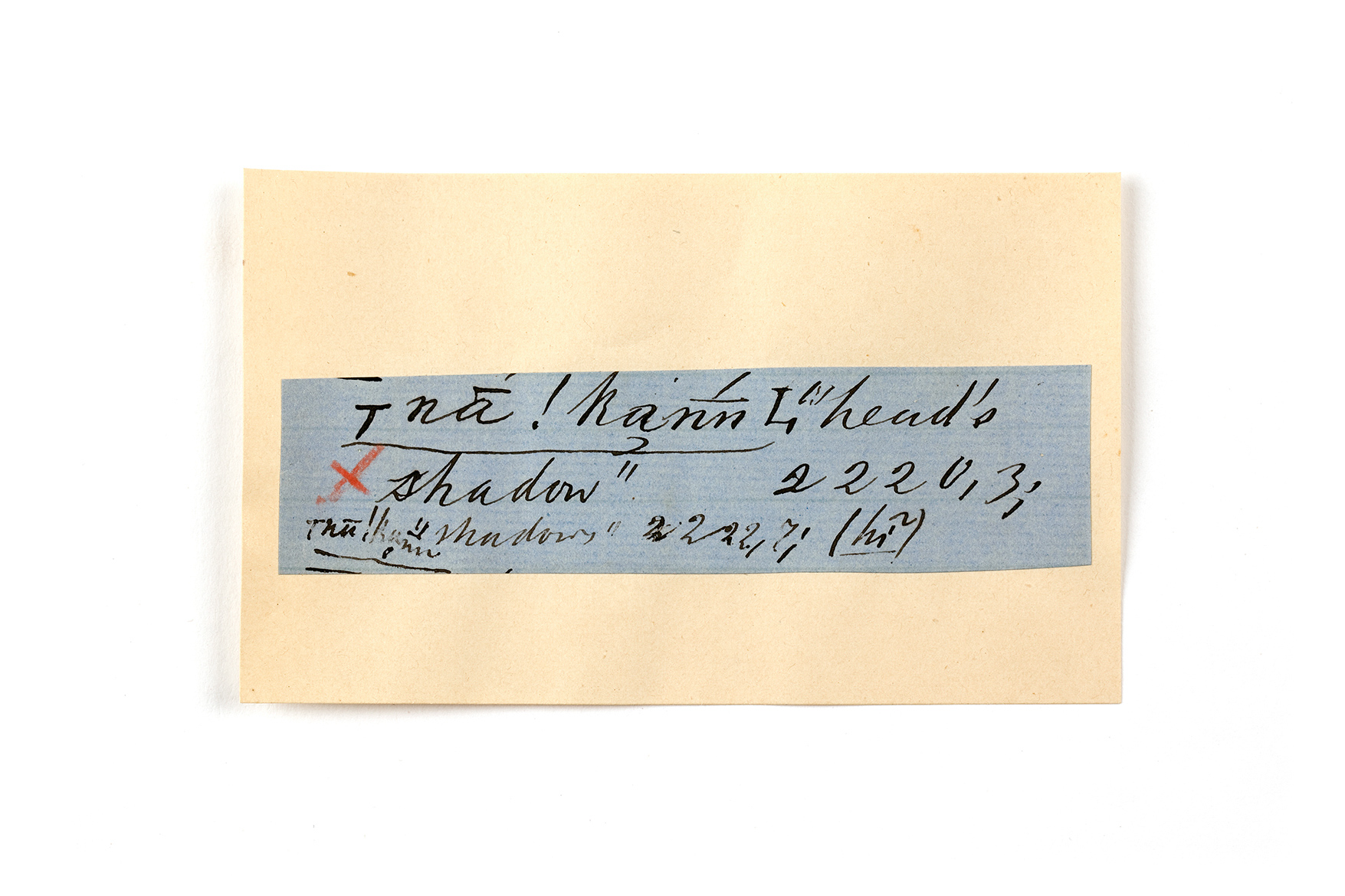 ink on blue paper glued on card