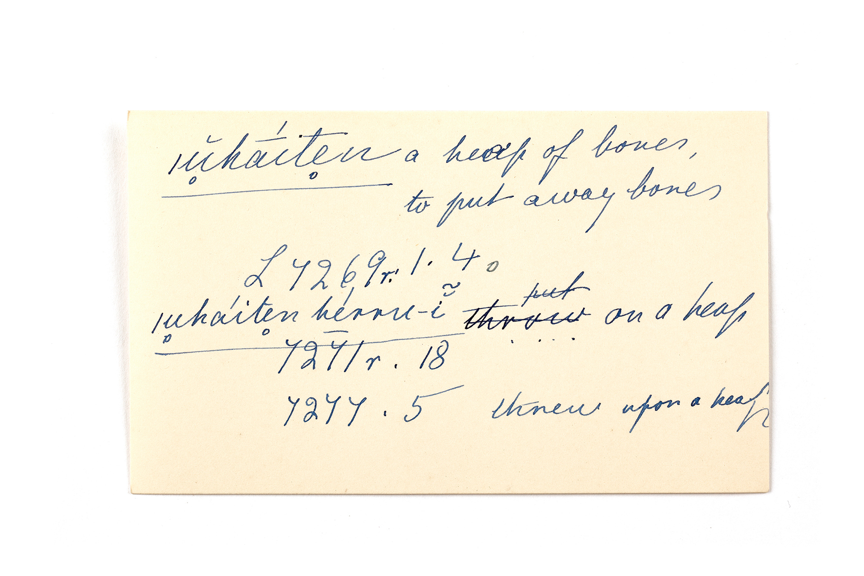heap of bones, put away bones (to), put on a heap, throw upon a heap