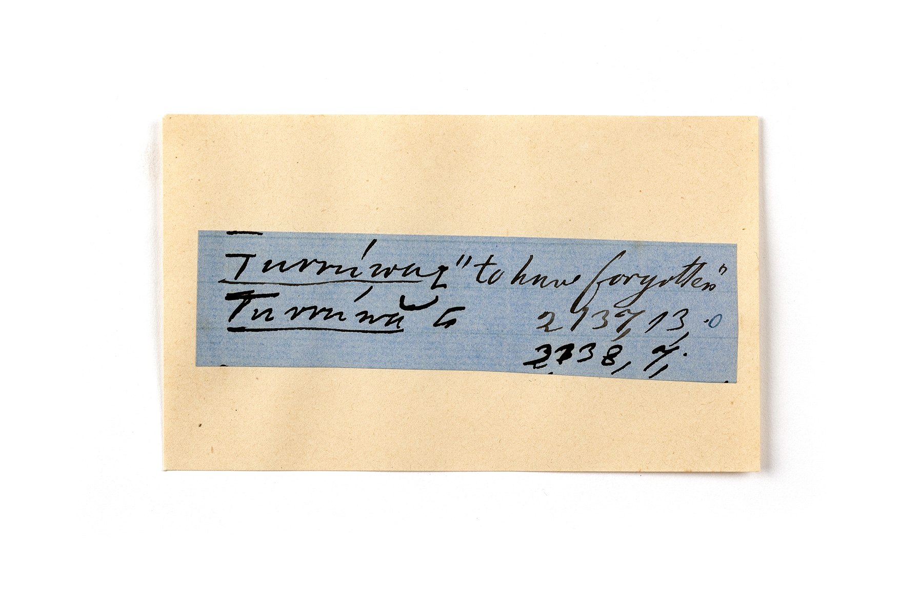 ink on blue paper glued on card