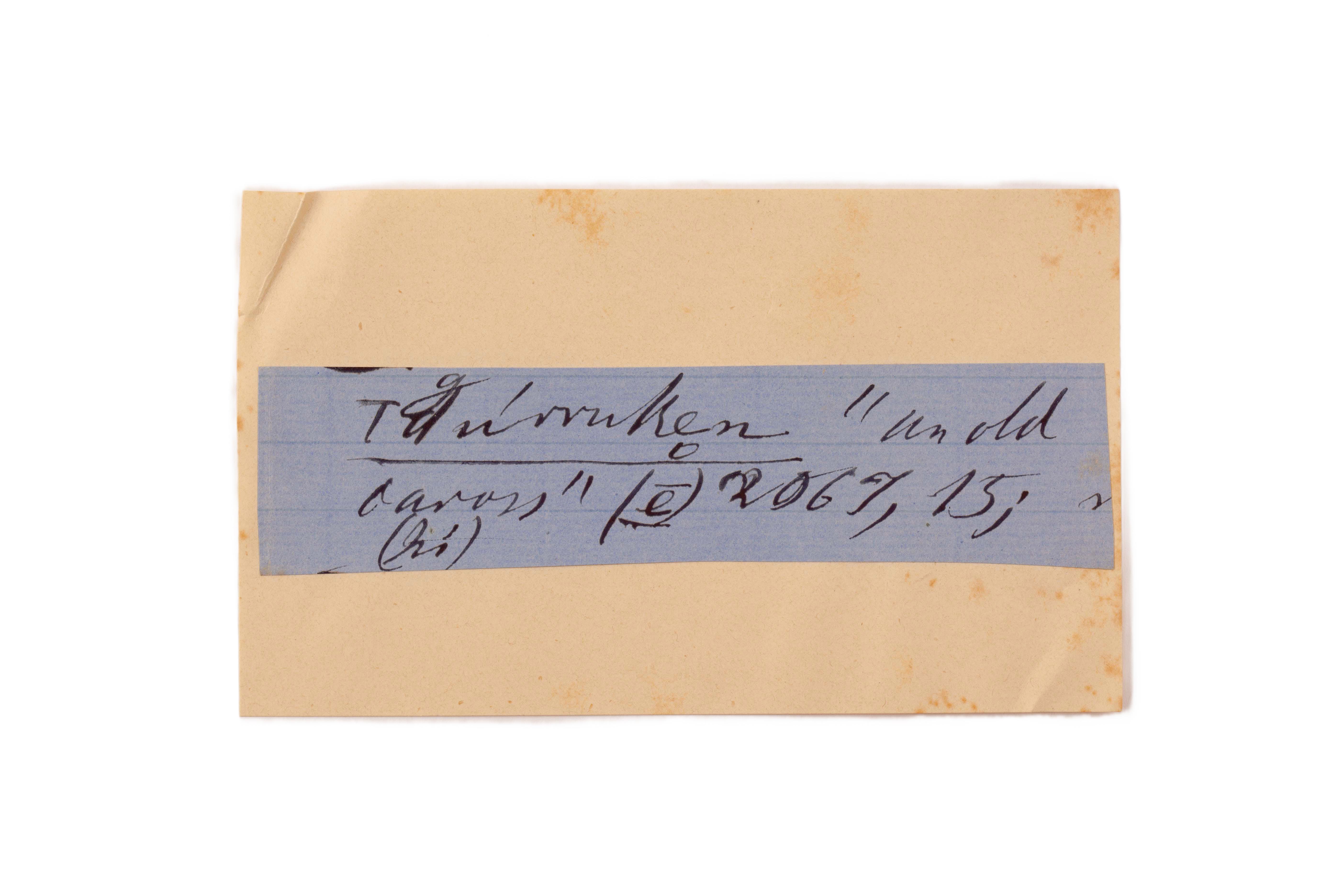 ink on blue paper glued on card