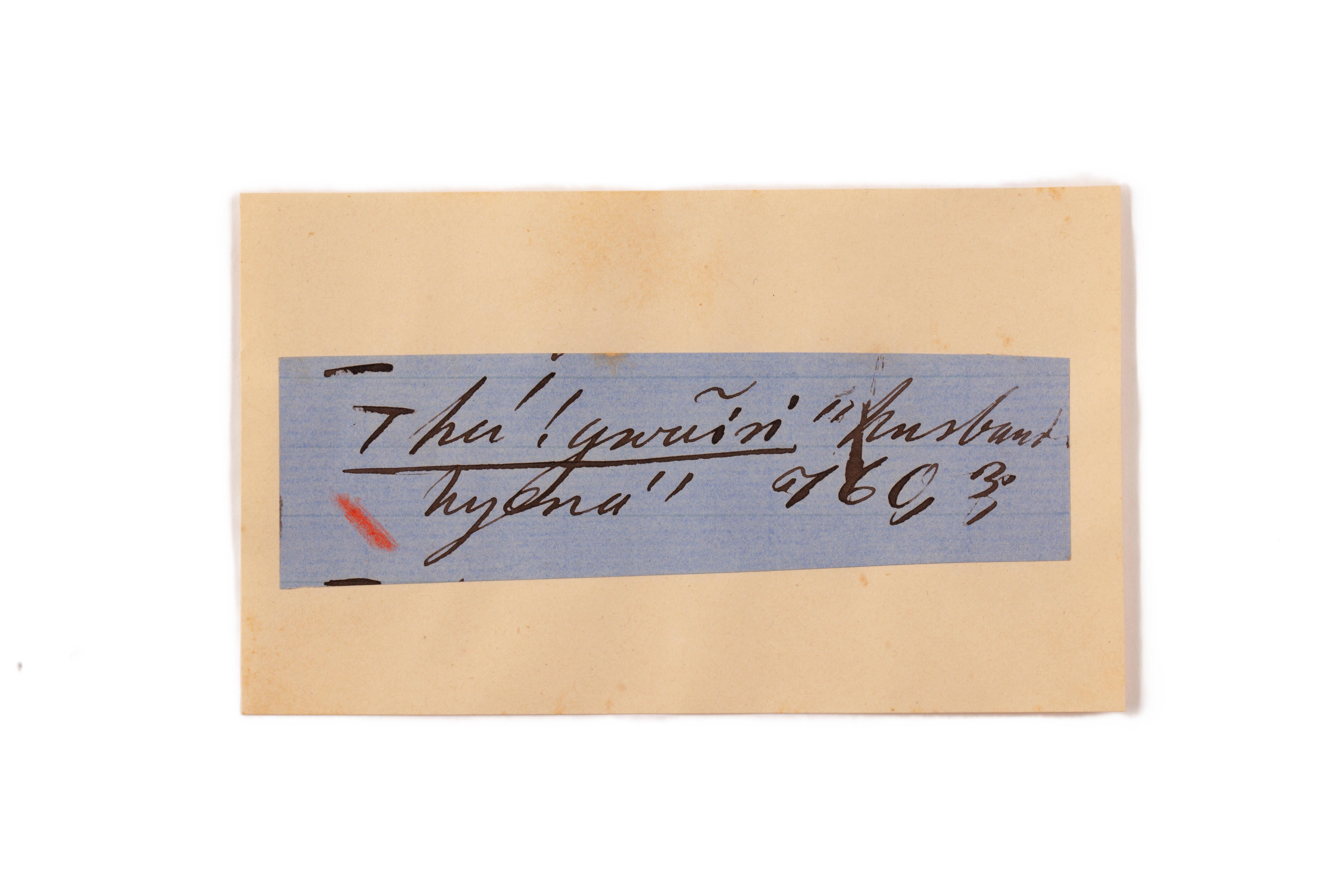 ink on blue paper glued on card