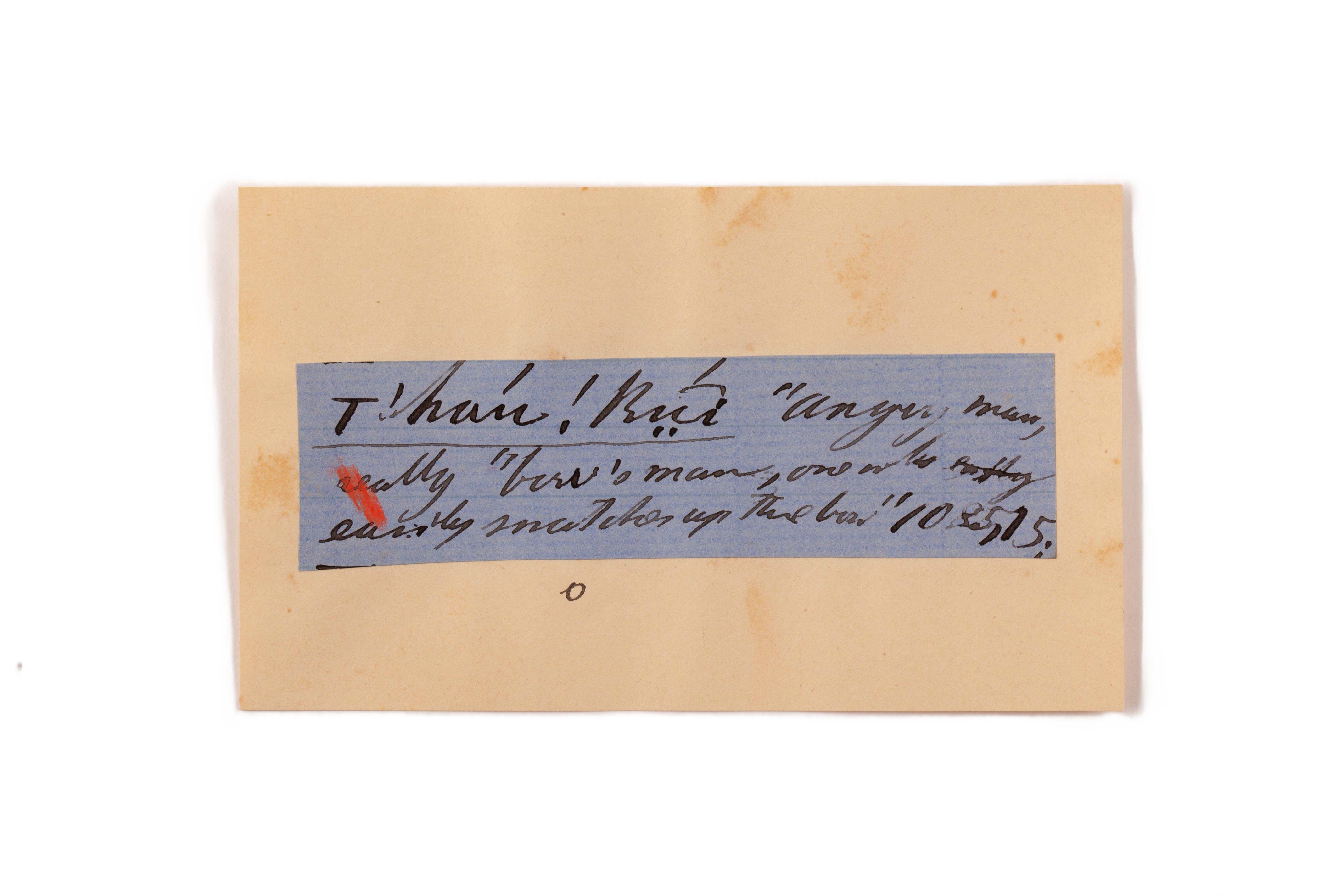 ink on blue paper glued on card