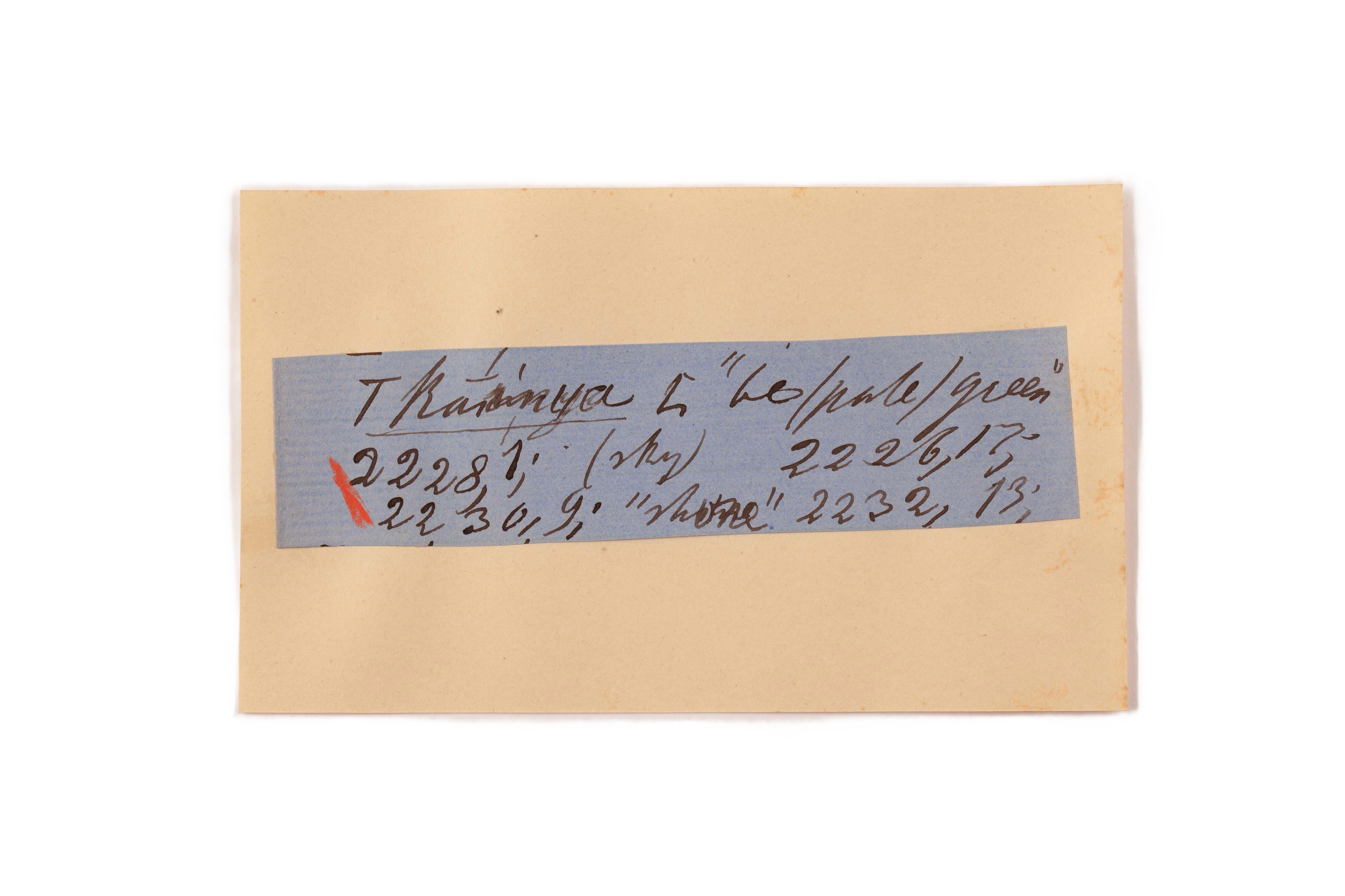 ink on blue paper glued on card