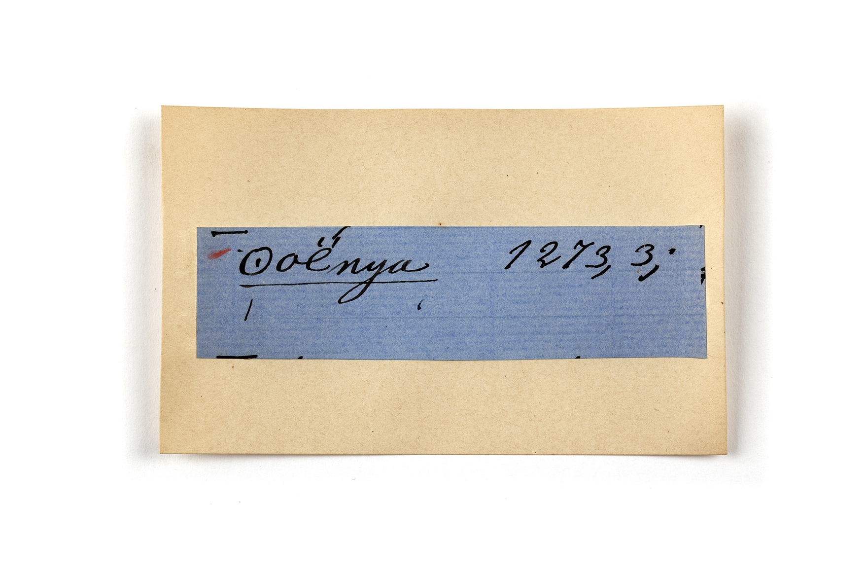 ink on blue paper glued on card