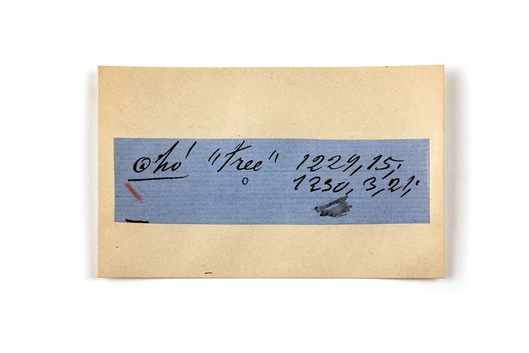 ink on blue paper glued on card